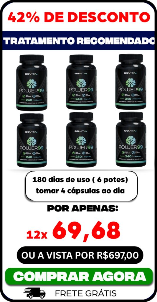Recomendamos tomar 4 cápsula O POWER99 por dia, 2 cápsulas após café e 2 cápsulas após almoço, para melhores resultados, manter uma alimentação equilibrada e hidratar-se melhor.